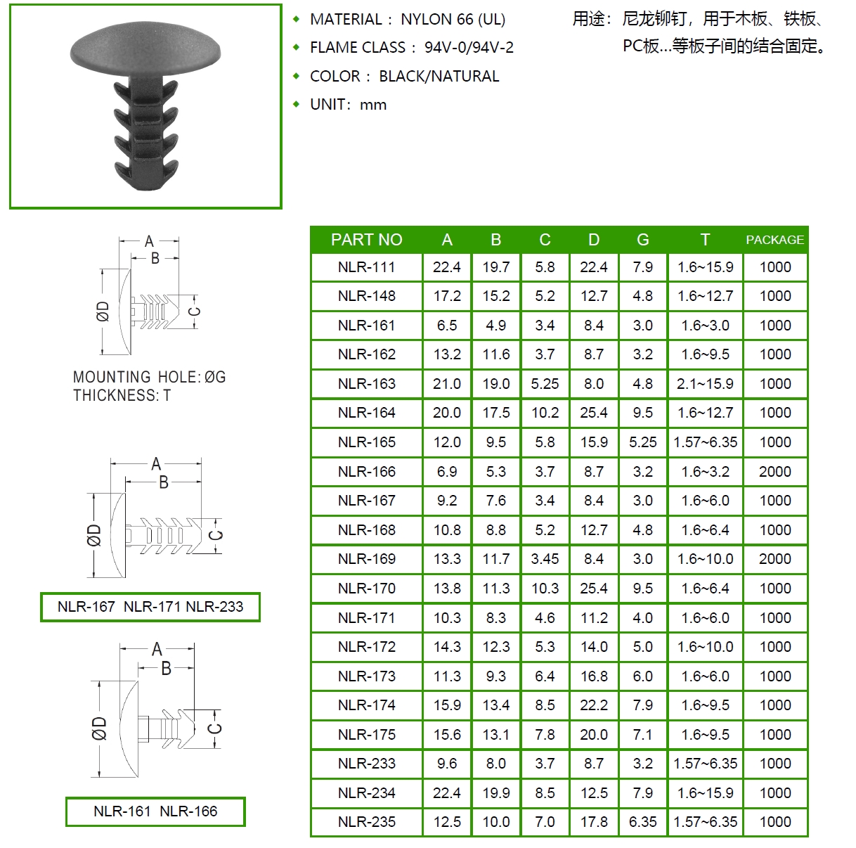 尼龙铆钉 NLR-111 NLR-148 NLR-161 NLR-162 NLR-163 NLR-164 NLR-165 NLR-166 NLR-167 NLR-168 NLR-169 NLR-170 NLR-171 NLR-172 NLR-173 NLR-174 NLR-175 NLR-233 NLR-234 NLR-235