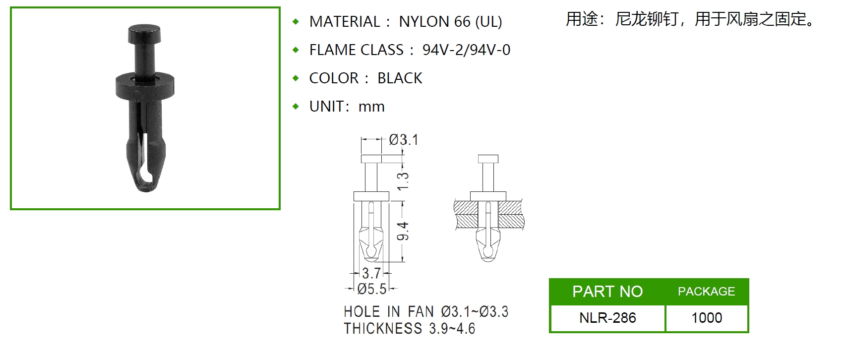 尼龙铆钉 NLR-286 风扇铆钉